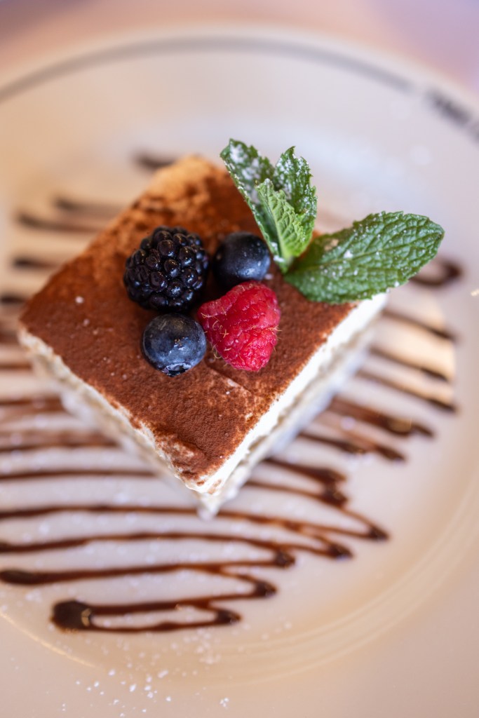 Case in point: the house staple, tiramisu. Airy and light, a perfect level of espresso against a touch of sweet mascarpone. Another option are the profiteroles — pastry puffs filled with cream with melted dark Belgian chocolate.