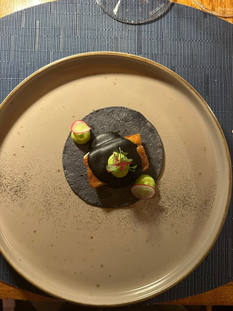 Our tour included a tasting of many El Cielo wines and then a dinner at their Michelin-listed restaurant, Latitud 32, which is a fusion of Yucatan and Baja cuisines. The kitchen prepared a multicourse menu, each dish paired with wine. There were three amuse bouche, including sikil pak and cucumber pibil, and then bluefin sashimi in pipián salsa; edam cheese stuff with mariscos; pork belly taco in chilmole sauce; grilled lamb Baja-style; and guava mousse. It was a flavorful affair, and just the right amount of food.