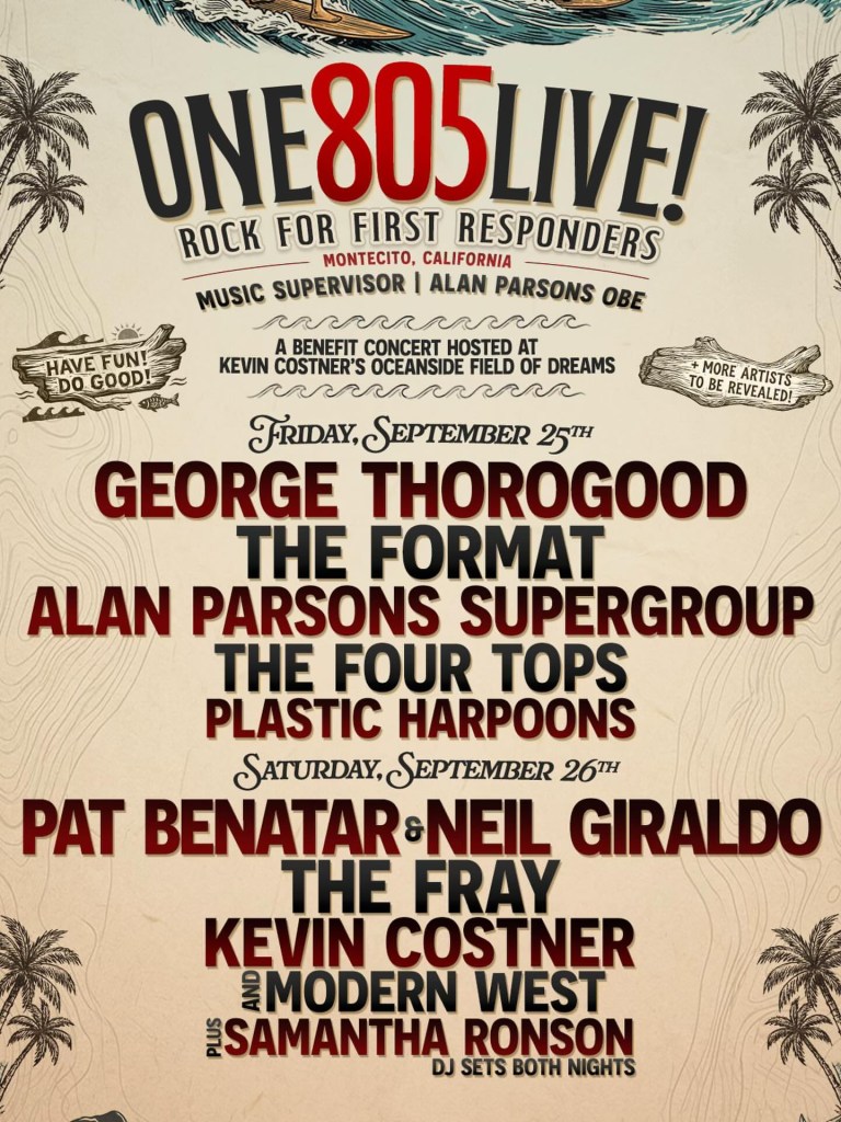 One805Live! is continuing to unfold its impressive lineup for its upcoming fundraiser on September 25 and 26. The two-day benefit concert will be hosted at Kevin Costner’s sweeping oceanside Summerland estate and plans to maintain its community-oriented mission.