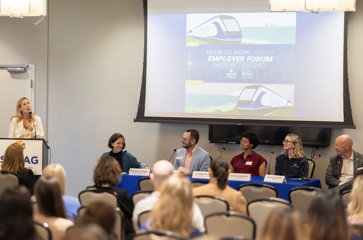 This topic was one of the focuses of the Train to Work Forum hosted by Santa Barbara County Association of Governments (SBCAG) and the Santa Barbara South Coast Chamber of Commerce. The Wednesday-morning event brought together around 200 business leaders, members of the workforce, and transportation coordinators to the Hilton Garden Inn in Goleta, encouraging them to identify potential barriers to using the new commuter service.