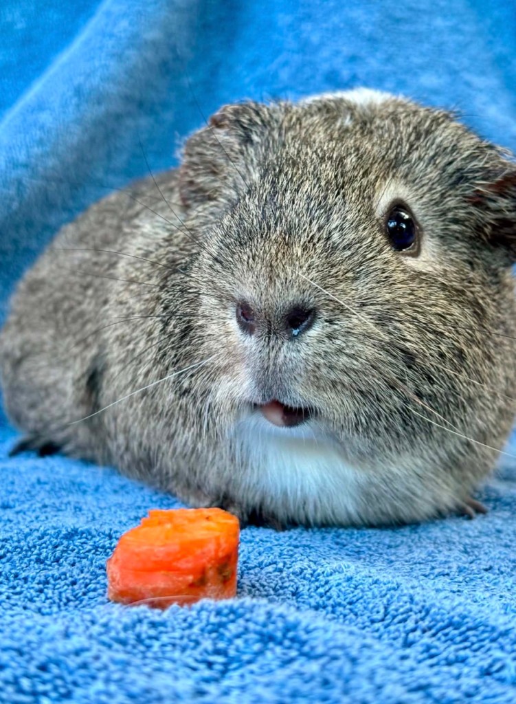 If you’re looking for a gentle single male guinea pig to bond with your own single male, or perhaps have as your completely spoiled and adored single piggie, then come meet Grayson. He has a gorgeous salt and pepper coat with white highlights and a sweet demeanor. Our guinea pigs have been getting adopted at a fast rate so don’t wait to come meet and fall in love with the right one or ones!