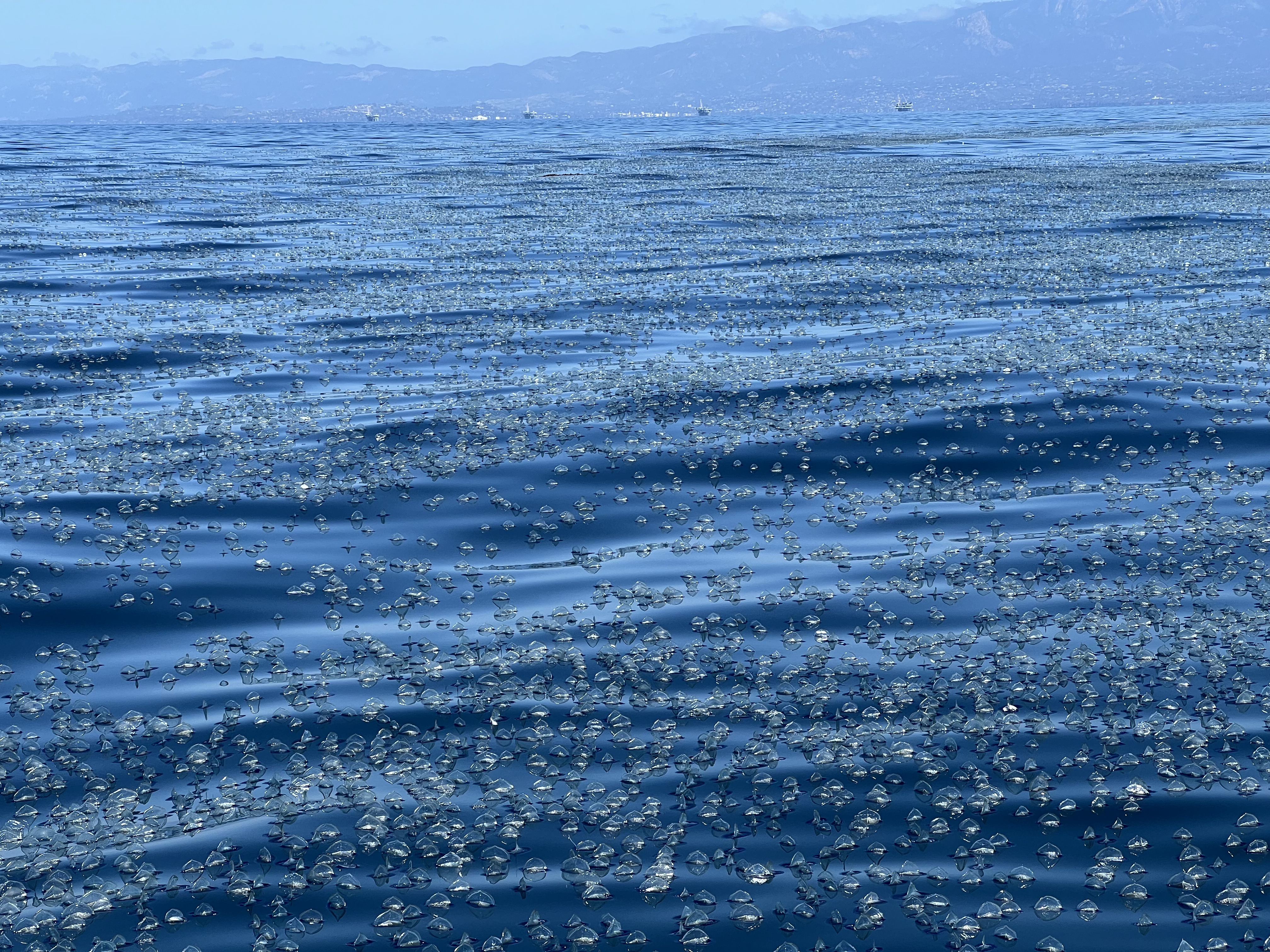 Thousands of jellyfish-like creatures known as by-the-wind sailors, or Velella velella, can be seen floating off Santa Barbara’s coast and washing up on beaches across the county and the state. Usually seen around May through July, these animals are an important part of the food chain, eaten by ocean sunfish (Mola mola) and sea turtles.