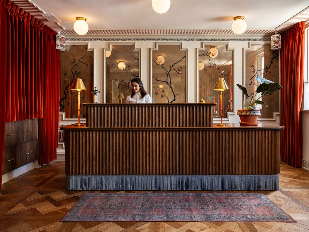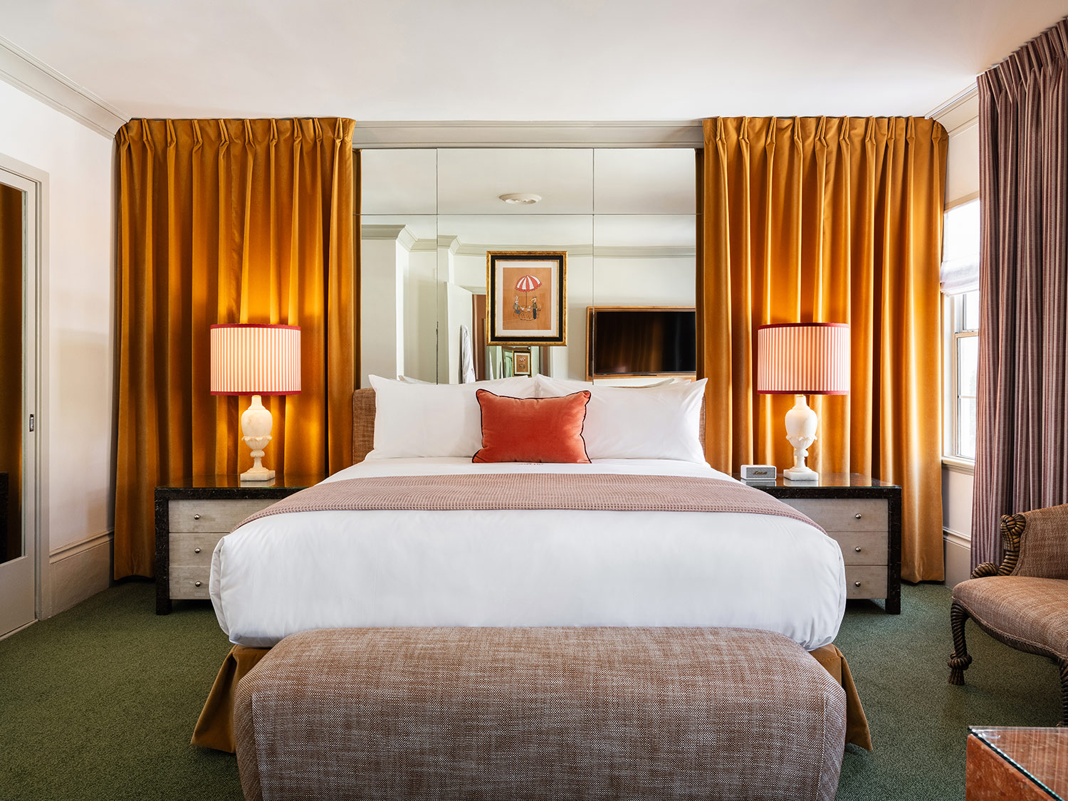 Set in a former residence circa 1939, the 44-room Hôtel Lili has been reimagined with the kind of considered details that reward slow observation. The color story moves from dusty pinks into rust, gold, and olive. Think plush textures, striped patterns, dramatic draperies, vintage glassware behind the bar — Old Hollywood warmth that feels genuinely lived-in rather than art-directed. Curated without being fussy. The kind of place where you want to settle in and linger.