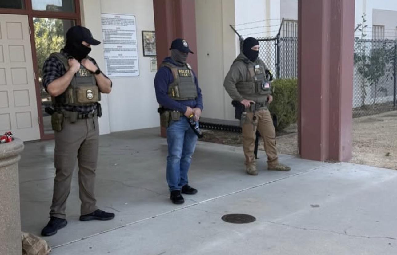 Volunteers with SBResiste, an organization that documents immigration enforcement activity in Santa Barbara, released a statement about recent operations at the Main Jail on Calle Real, where ICE agents — often masked and armed with pistols and large canisters of bear spray — have been seen occupying the parking lots, main entrance, and lobby areas as they wait to make an arrest.