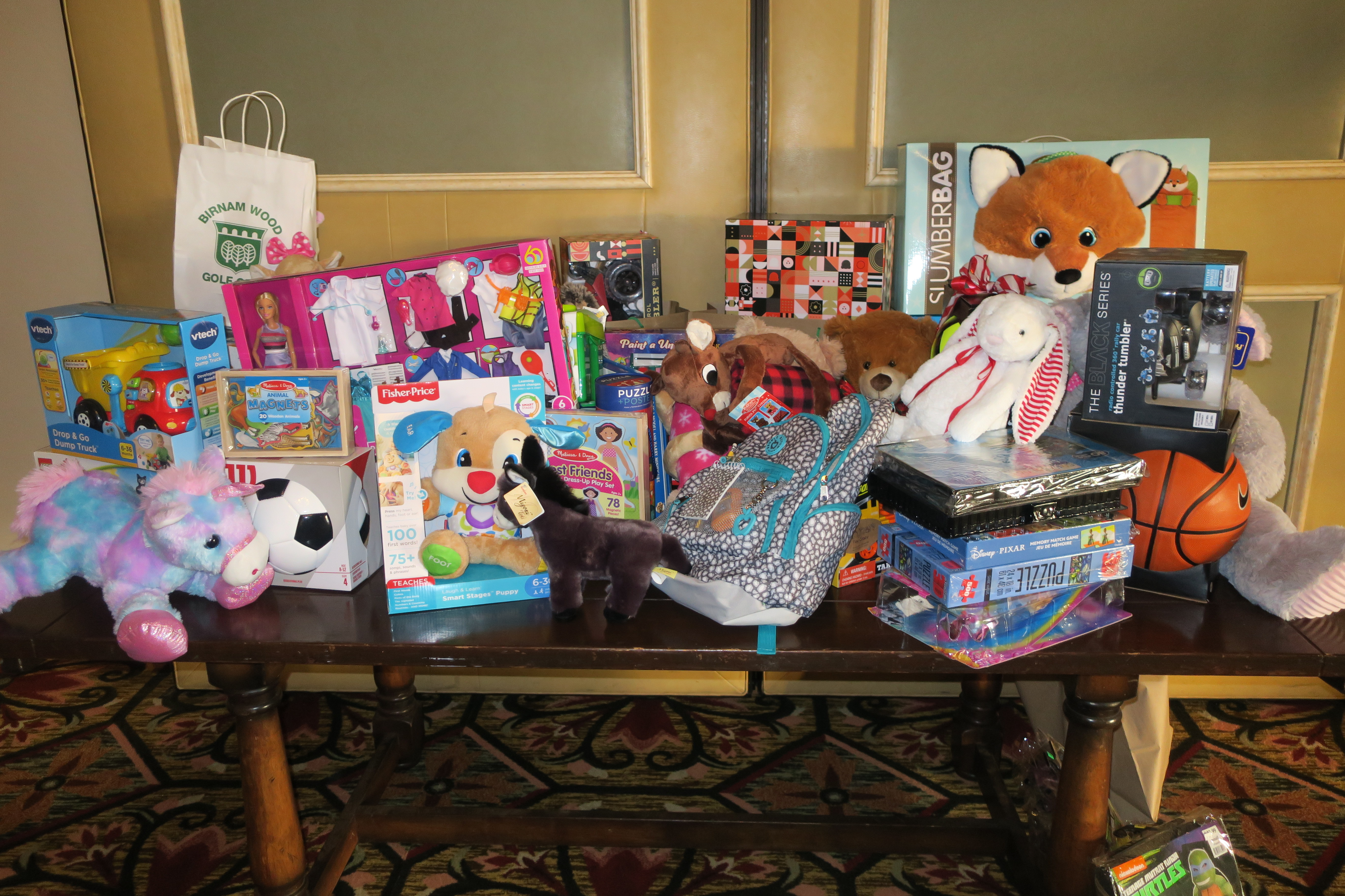 The 65 attendees — Associates, their guests, staff, and boardmembers – mingled in the elegant El Mar Room at the Biltmore, which was decked out with a lovely holiday tree and decorations. Fredrik Rosvall played holiday tunes on piano, and there was an endless array of decadent treats, including brown butter pecan scones and eggnog cream puffs. A large table was covered with donated gifts for children at CALM.