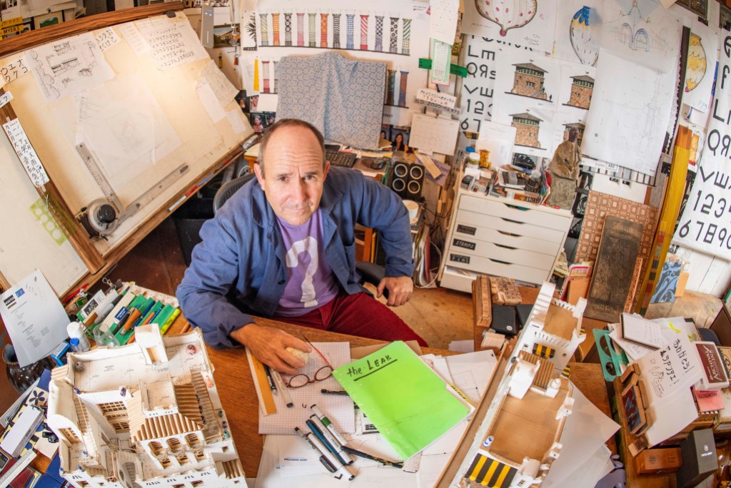 Jeff’s wife, Karin Shelton, an accomplished fine artist in her own right, wields her brush on various architectural projects and also helps with the Shelton line of fabrics, tiles, and books. Their daughter Mattie Shelton is part of the team as well, working on the fabrics, tiles, and her own line of unique shelters called Shelton Huts. (Their other daughter, Elena Shelton, works as a doula.)