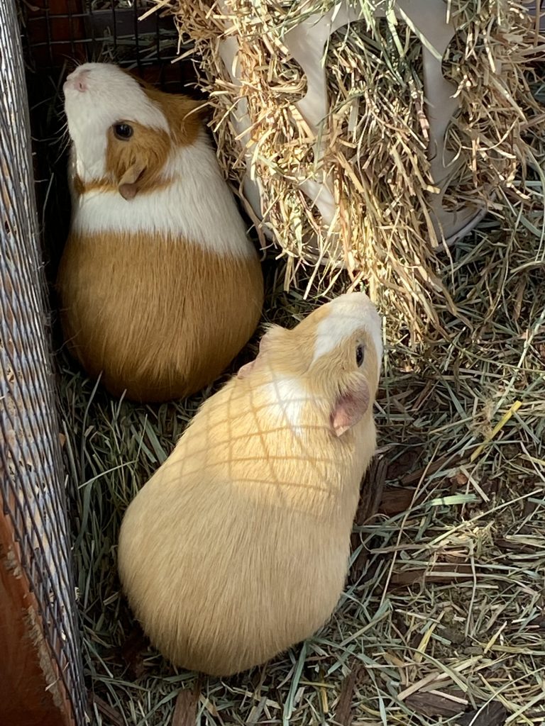This pair of young lady Guinea pigs are as pretty and gentle as their names imply. They are deeply bonded and are often seen snuggling together. Buttercup is the shy one who watches while Rose sashays out for hand-fed greens or treats. They are easy to handle, sweet-tempered, and cute as two peas in a pod!