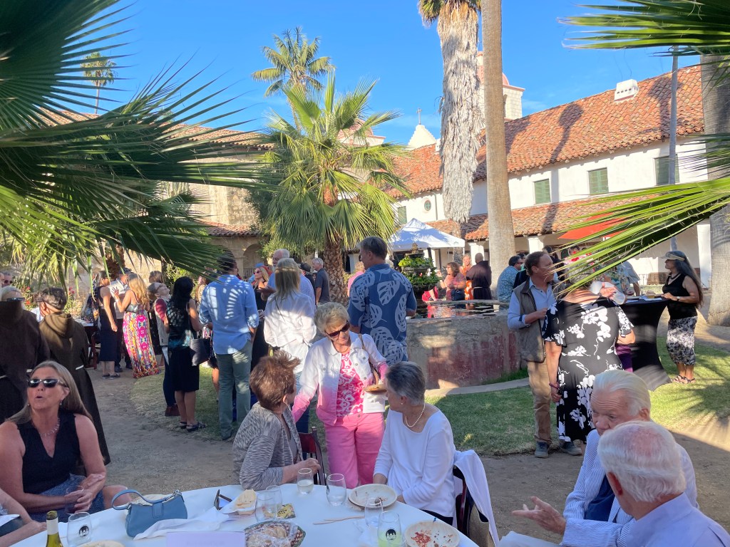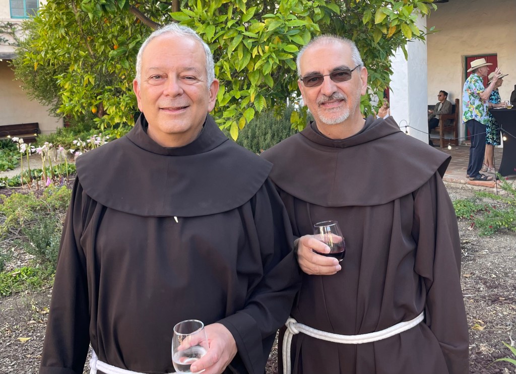 On July 21, Old Mission Santa Barbara (Old Mission) held the third of four Drinks at Dusk in the Mission’s Secret Garden. These popular gatherings keep getting more so, with about 150 people turning out for this one. Guests got to mingle with Franciscan friars, Old Mission staff, and other community members in the enchanting garden, which is generally off-limits to the public, while enjoying wine, beer, and appetizers from various purveyors and live music by Ybarra Music.