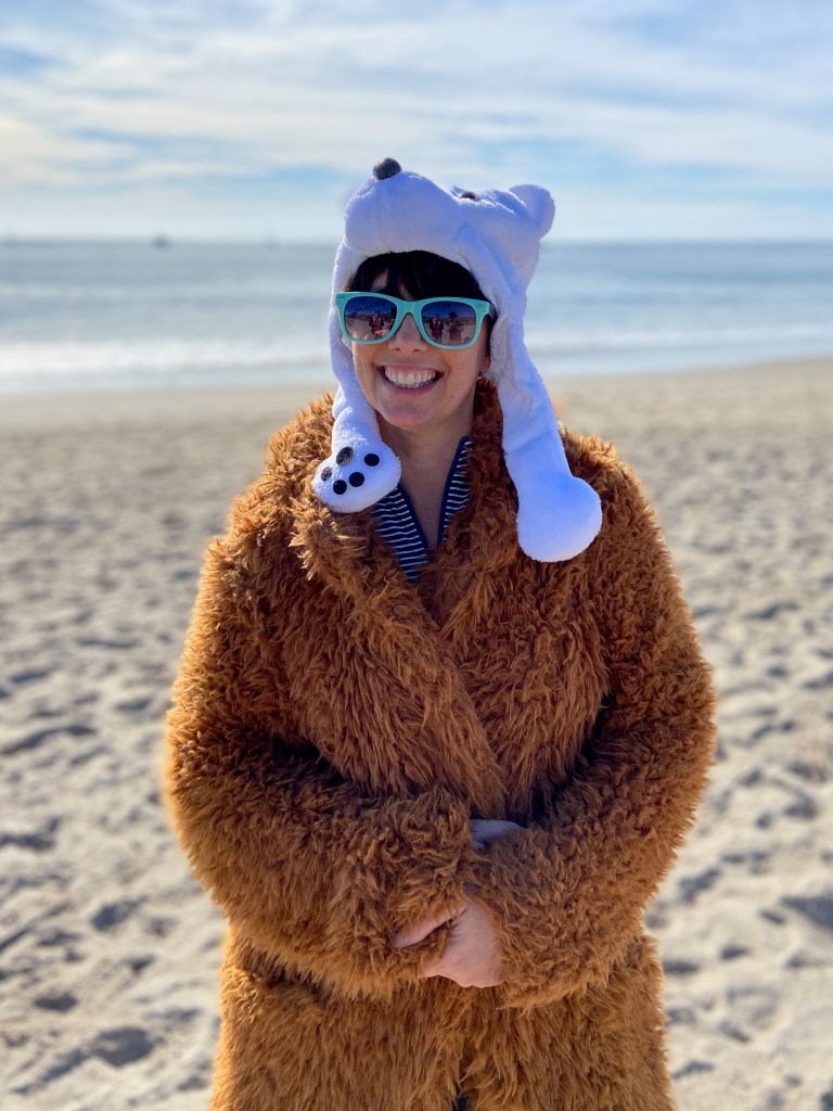 How does this compare to other Polar Dips around the world? We sometimes are given grief for describing this as a Polar Dip when the ocean temperature is in the sixties and the photos show blue skies and palm trees in the background, but it is still a challenge that requires commitment and a bit of courage. I’ve been to a huge New Year’s Day dip at Venice Beach and hope our version keeps growing and brings the community together.
