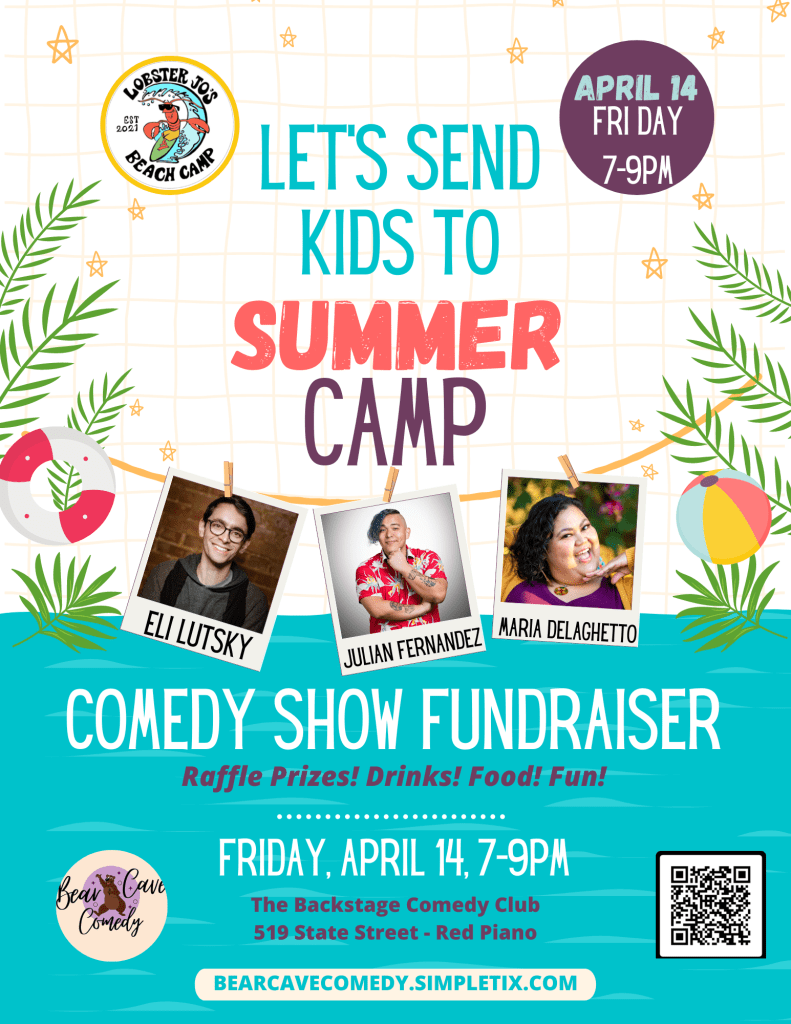 Want to enjoy some brilliant live comedy for a good cause? Bear Cave Productions recently announced an upcoming fundraising event created with a goal to send 20 children to Lobster Jo’s Beach Camp this summer. At Lobster Jo’s, the children will be able to make sandcastles, sing beach karaoke, play in the ocean, and so much more.