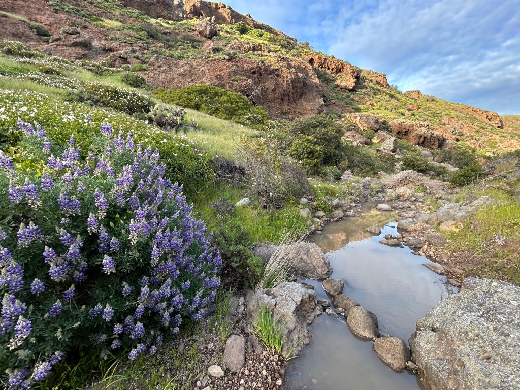 Island buckwheat and Humboldt lilies haven’t shown yet, but by mid-May they should be found in and around the canyon. Colorful bushels of island paintbrush are also on the way.