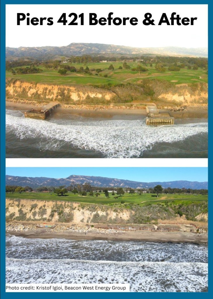 Started in 2019 — and 320 truckloads of debris and nearly 13,000 hours of labor later — the process to remove the nearly 100-year-old oil piers was completed in February. The decommissioning included the removal of 6,000 tons of hazardous soil, concrete, and steel. The effort came as a collaboration between the City of Goleta and the State Lands Commission with a fervent backing of community support.