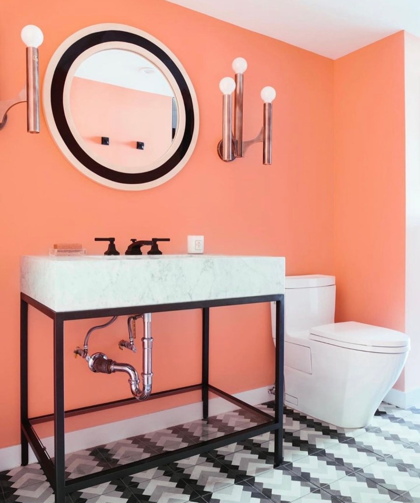 I have a confession to make. And where better to confess than in front of 15,000 of my best friends and loyal newsletter subscribers? Here goes. I’m scared of painting. Not painting like watercolors on a manageable 18″ x 24″ canvas. That’s fun. I’m scared of house painting. Like painting a room. Any room. I’ve lived in my downtown cottage for more than six years, and my walls are almost all the same ivory, off-white, buff color that they were when I moved in. I have dreams of brightening up my bathroom — perhaps like the above? — or going bold on one wall of the living room, maybe like this?