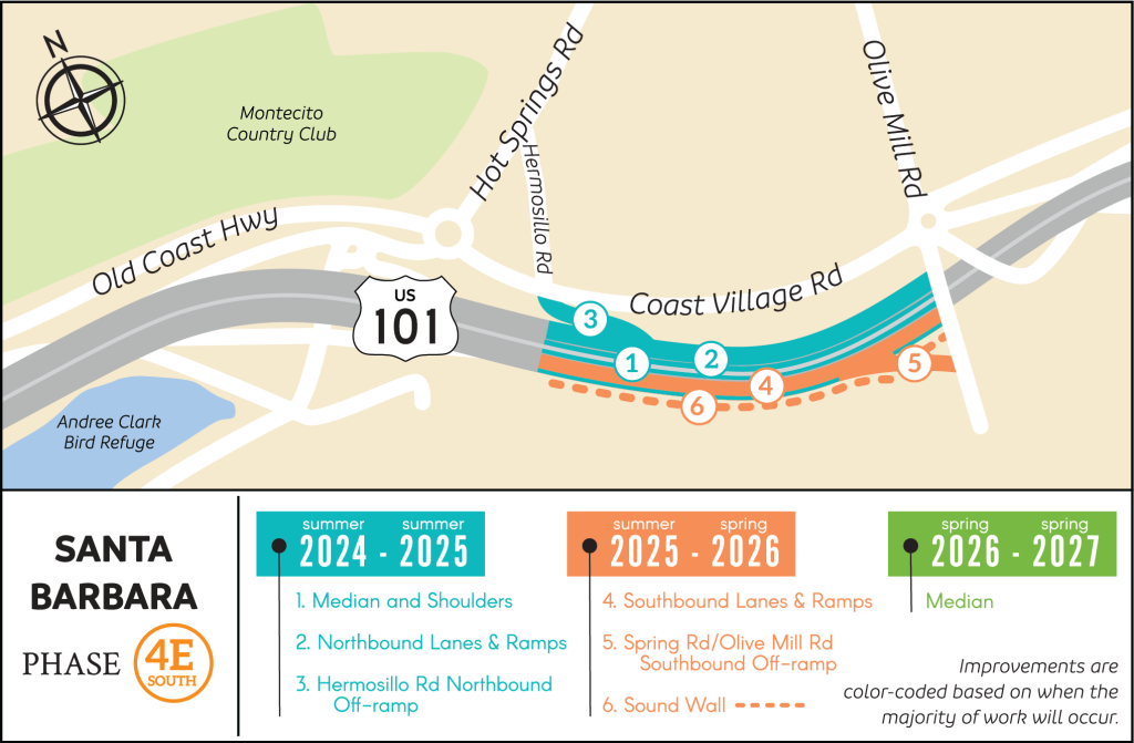Freeway improvements will continue in Montecito and move into the Santa Barbara South segment in late