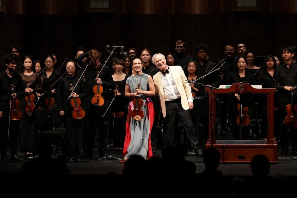 But we digress, if slightly. Lintu’s Mahler Six made a strong and sensitive impact from the opening movement to its finale, awash in shifting orchestral colors and tempers, from cautious heroism to grim reflectiveness. The largesse of the implied structural arc of the symphony is mirrored by the largest orchestra Mahler ever called on, which here served the purpose of showcasing a huge population of MAW fellows. In fact, before the second movement, Lintu resorted to the unusual effort of pulling his podium and music stand closer to the lip of the stage, the better to see and be seen by the epic ensemble.