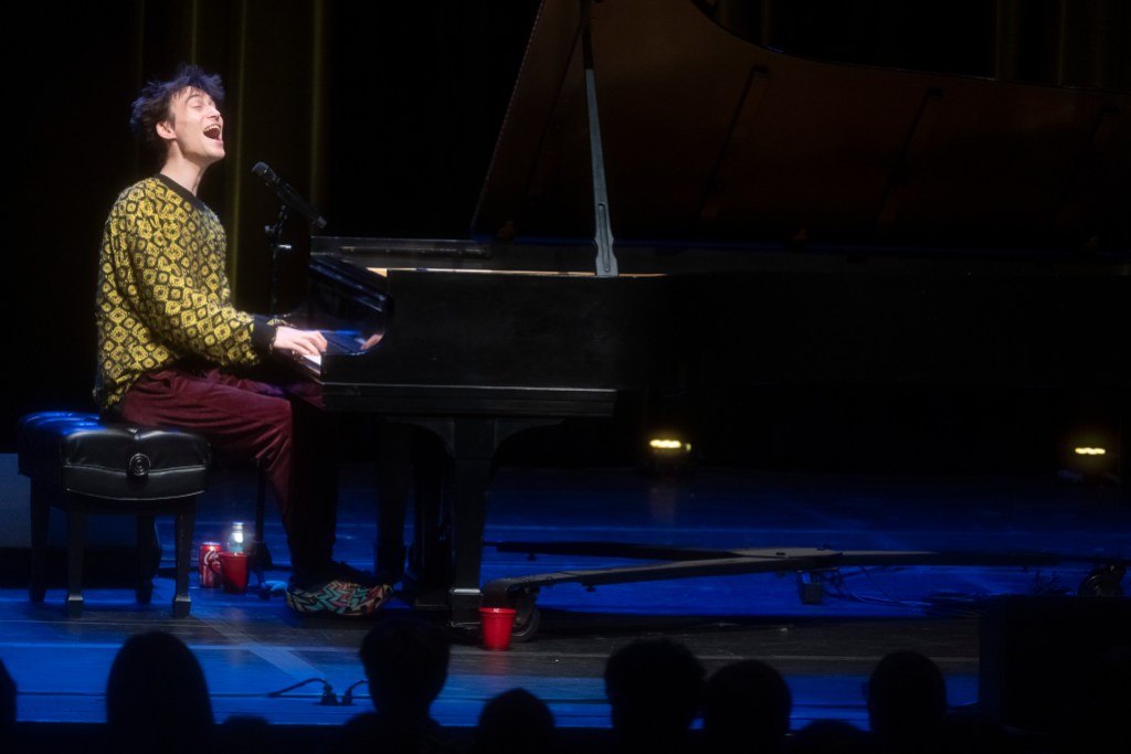 With Campbell Hall conveniently split into three, Collier opened the show by directing each section to harmonize to make an array of melodies. His opening sequence included an eccentric performance of Queen’s “We Will Rock You” and composing a live piece to make the room sound like it was surrounded by birds and a running creek. He concluded his opening with a piano cover of The Beatles’ “Blackbird.”