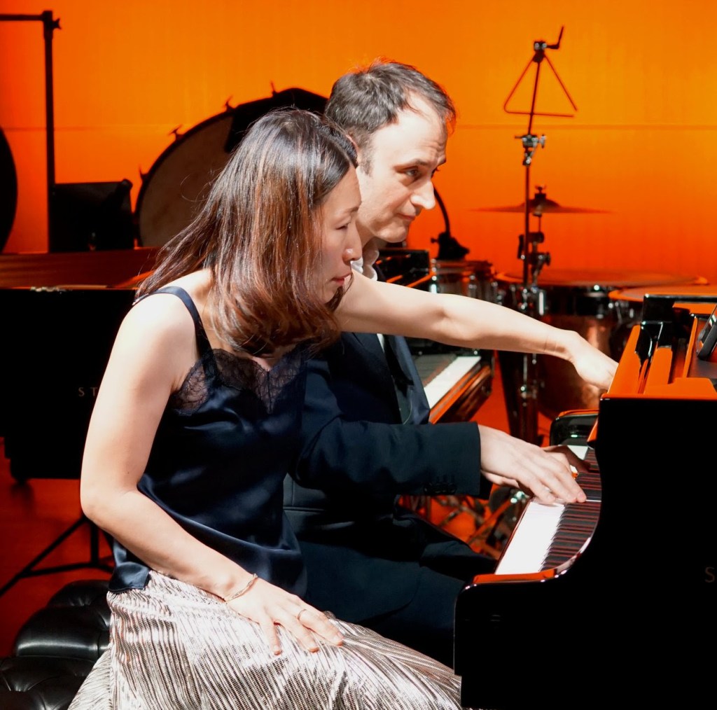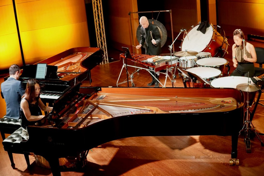 The partnering impulse upped its ante when the commanding percussionist couple Jung and Vinson joined the stage for the Bartók piece. In the span of three varied movements, Bartók’s 1937-vintage work weaves its distinctive spell, and draws a logical throughline between percussion and piano, an instrument with percussive, “hammering” nature in its DNA. Bartók’s profound musical narrative moves through the restless, dissonant quality of the opening movement, the slow march building to dizzying intensity in the second, and the affirmative — even cheerful melodic gleam of the finale.