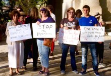 ‘My kids start school in two weeks, and I’m terrified to let them go,’ said one protester.