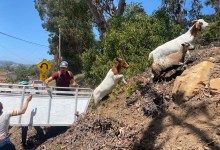 Goats are eating flammable vegetation in a Santa Barbara neighborhood to mitigate fire risk.