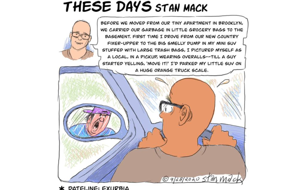 The Scales Fall Away These Days By Stan Mack “Before we moved from our tiny apartment in Brooklyn, we carried our garbage in little grocery bags to the basement.”
