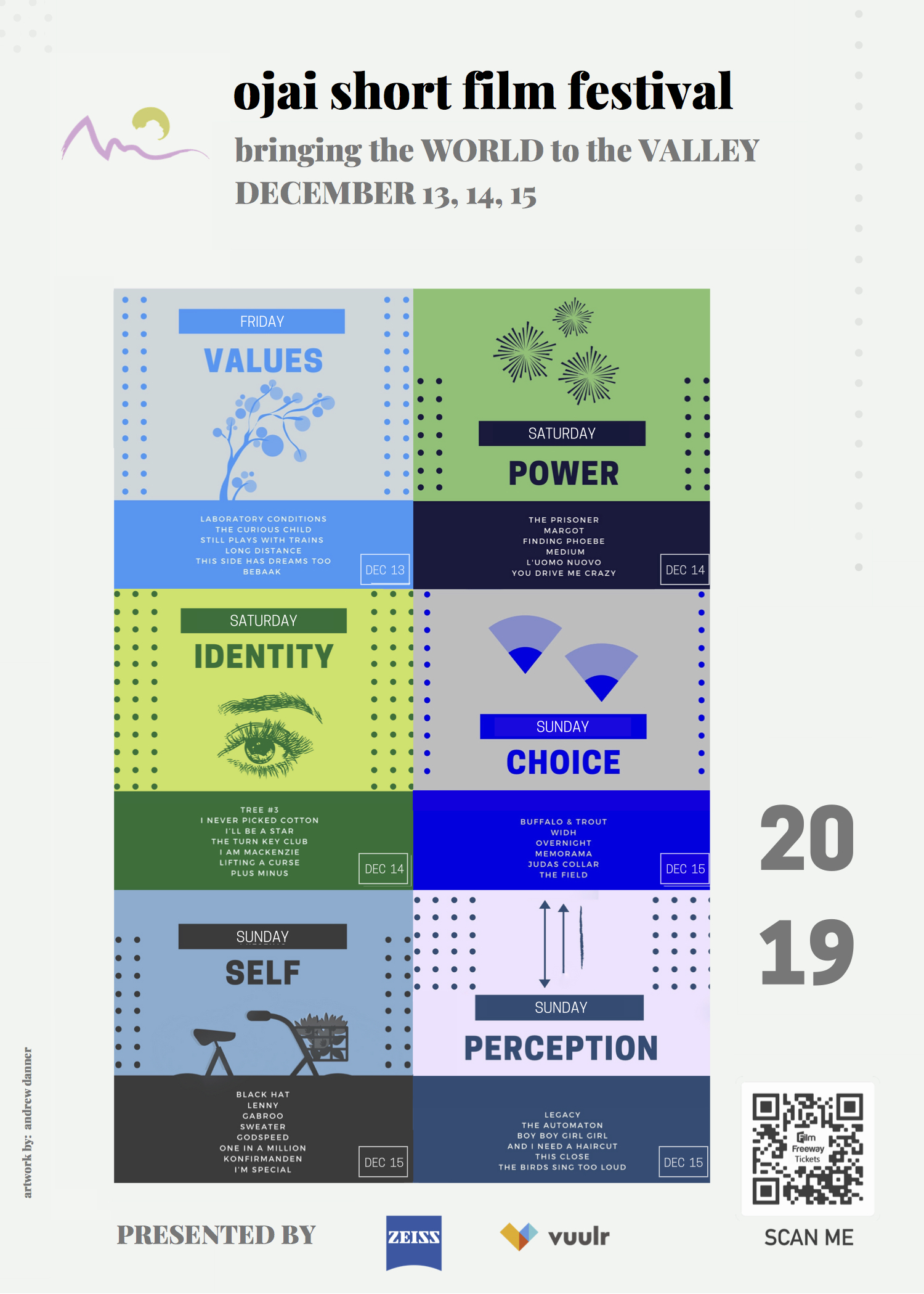 This is the 2nd annual Ojai Short Film Festival showcasing some of the finest short-form content from local communities and around the world, using the medium of cinema to foster and empower independent artists into the mainstream. Featuring films from the US, India, Kyrgyzstan, Australia, UK, Sierra Leone, Portugal, and Italy to films starring Oscar winners and nominees Marisa Tomei, Minnie Driver, Katie Holmes, Terry Rossio, and Ross Kauffman; and with spotlight on films from South Asia featuring celebrated Bollywood artists such as Nawazuddin Siddiqui, Divya Dutta, and Guneet Monga.