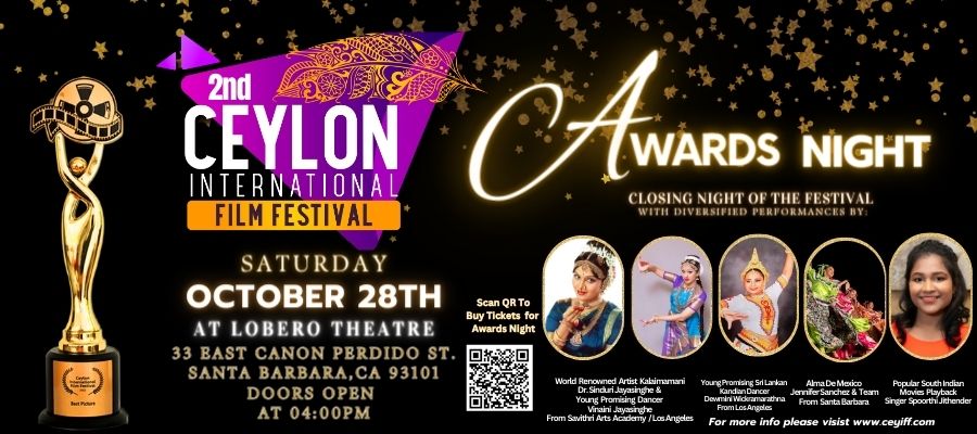 Colombo, Sri Lanka and Santa Barbara, California are separated by 9,301 miles and 12.5 time zone hours. However, Sri Lanka is once again coming to Santa Barbara in the form of the 2nd Ceylon International Film Festival (CEYIFF) which will run from Monday, October 24 to Saturday, October 28, 2023.
