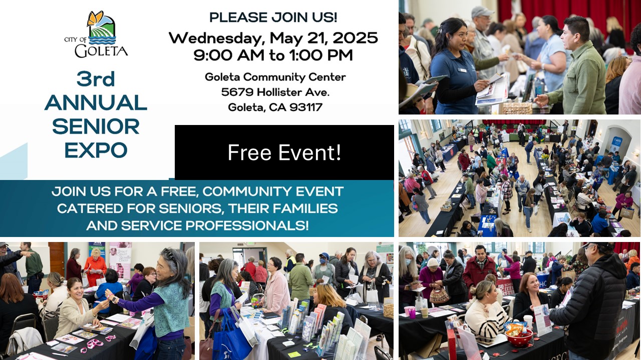 Attention all Seniors and caregivers, the City of Goleta is pleased to once again hold a FREE Senior Expo designed to empower seniors, their families and service professionals with valuable resources and information.