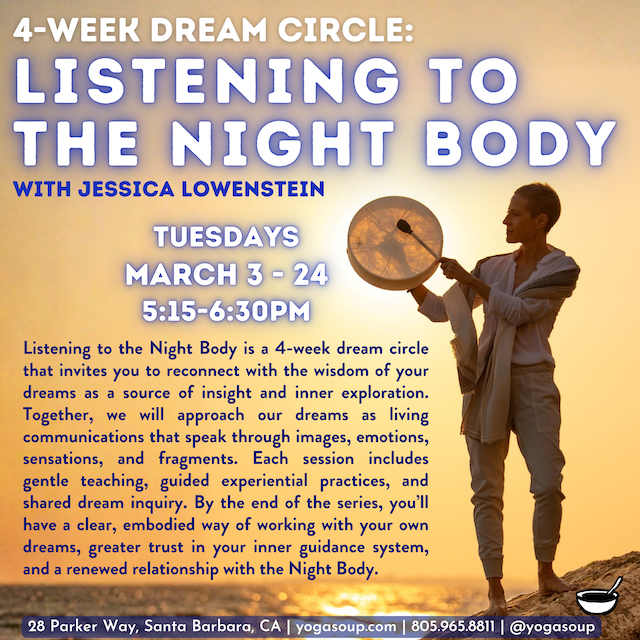 Listening to the Night Body is a 4-week dream circle that invites you into this timeless practice in a grounded, accessible way—helping you reconnect with the wisdom of your dreams as a source of insight and inner exploration.