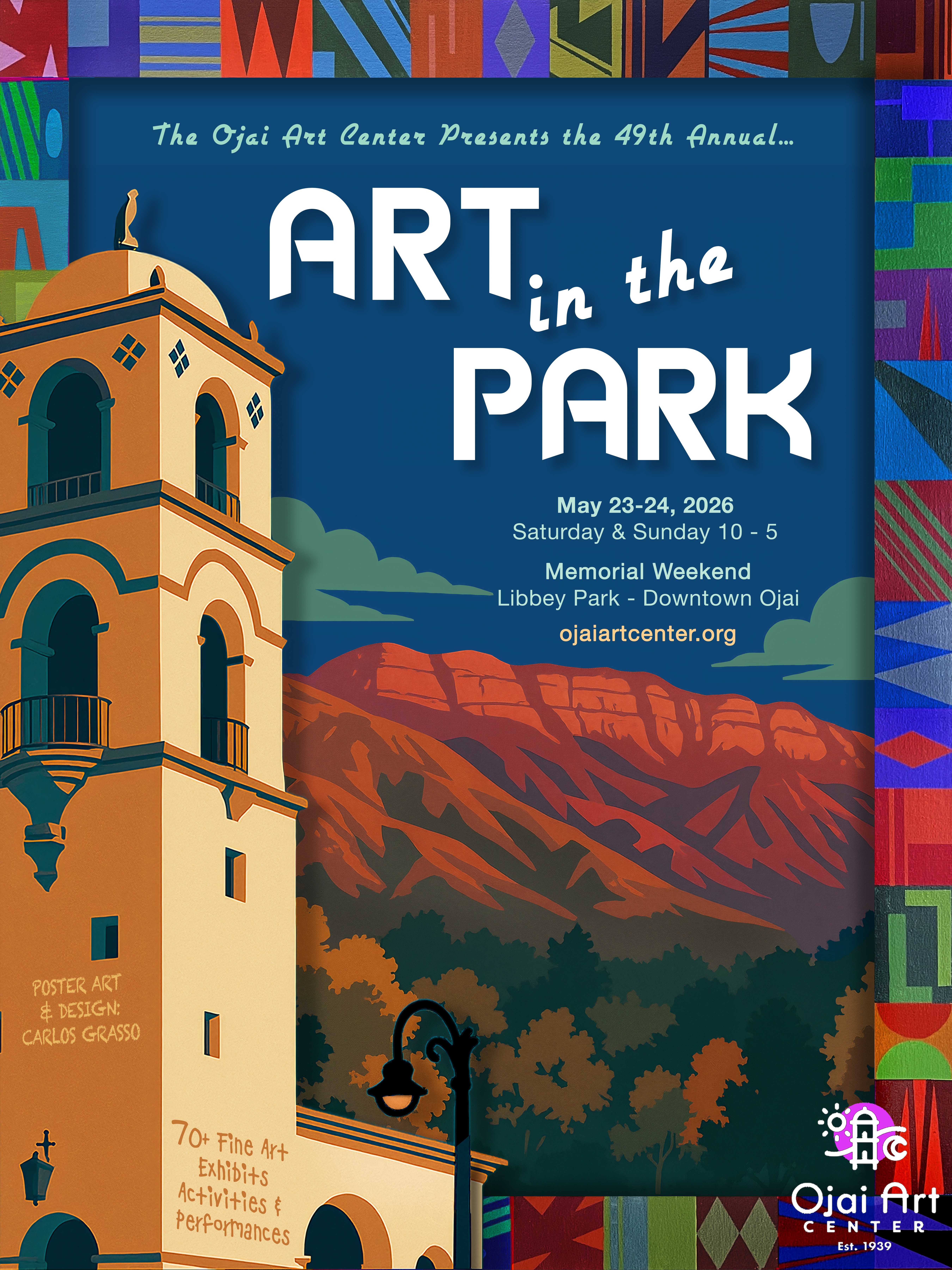 Featured exhibitor and poster artist is Carlos Grasso, with Saturday performances by Dance Ojai and live blues music on Sunday by Shawn Jones and his band.