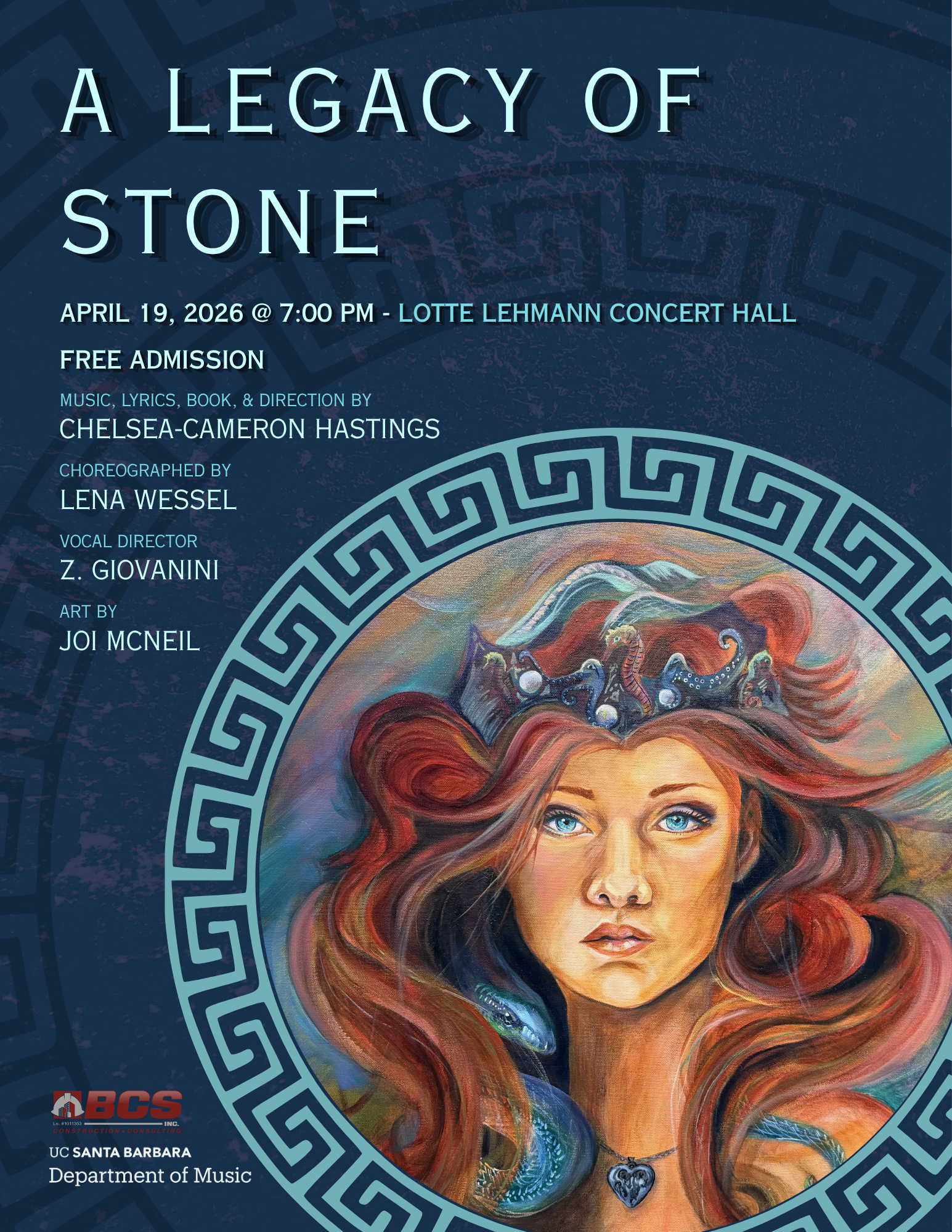 A Legacy of Stone, an original musical reimagining Medusa’s tale, will debut on April 19, 2026, at 7 p.m. at UC Santa Barbara’s Lotte Lehmann Concert Hall.