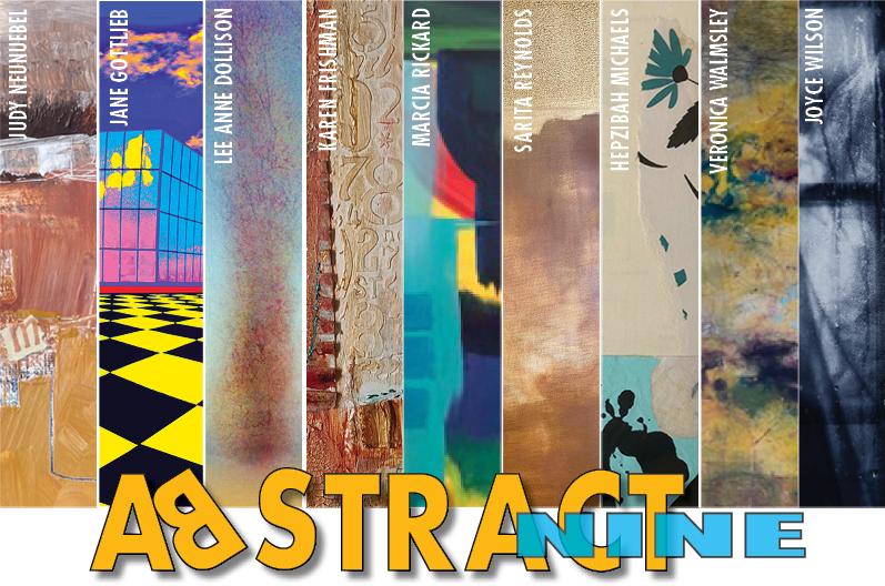 The Abstract Nine is an evolving and diverse group of artists whose work connects and conveys individual interpretations of non-objective art. Abstract artists use a visual language of shape, form, color and line to create compositions which may exist with a degree of independence from visual references in the world. The main purpose of abstraction is to go beyond representation to create an intangible and emotional art experience for the viewer. The artists’ works range from non-objective, fully abstract work, to that where some objects or texts are recognizable.