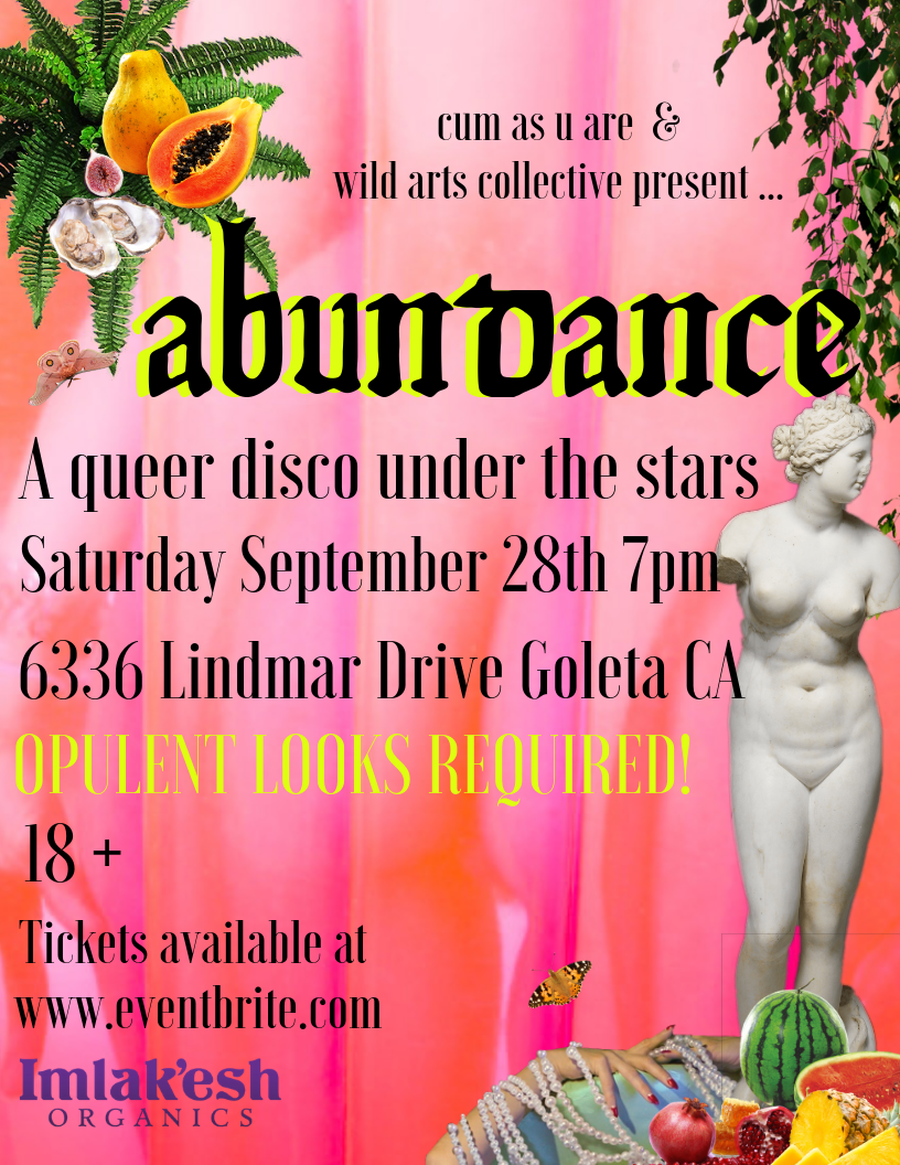 “Abundance folks aren’t here to be subtle, we are over-the-top, lavish and extravagant. We are dripping in glitter, crystals, pearls, organza, and self-confidence, we demand to be noticed. We disregard social expectations, we let our bellies hang out and wear our scars with pride. We aren’t afraid to show up only in a thong and a pair of angel wings. We disregard gender roles and play with the binary. We dance, uplift each other, respect boundaries, ask pronouns, and dance some more.