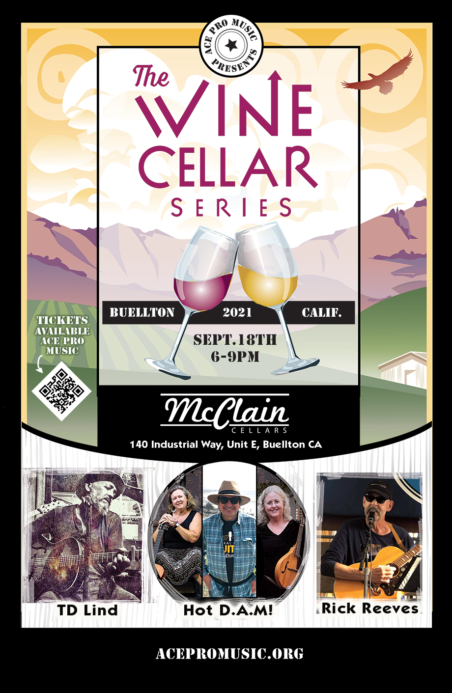 Ace Pro Music presents the Wine Cellar Series! A concert will be held for musicians that have been impacted by Covid-19, keeping live music alive in our communities. Artists include Rick Reeves, H.O.T. Dam, and TD Lind. Tickets are pre-sale $20, at door $25, and VIP $75. Join us to support an amazing venue and our incredible, hard-working musicians! We hope to see you there to enjoy a night of great music, and to benefit the musician’s fund.