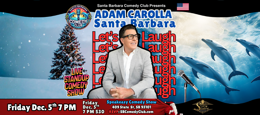 Let’s laugh together on Friday, December 5th.  Join us in Santa Barbara for a hilarious holiday season of Stand-up Comedy. Get ready to laugh until your sides hurt because Adam Carolla is coming to Santa Barbara to perform live stand-up comedy!