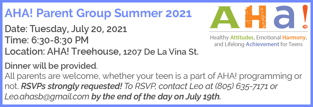 All parents are welcome, whether your teen is a part of AHA! programming or not.RSVPs are strongly requested!