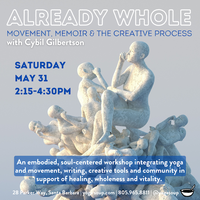 An embodied, soul-centered workshop integrating yoga and movement, writing, creative tools and community in support of healing, wholeness and vitality.