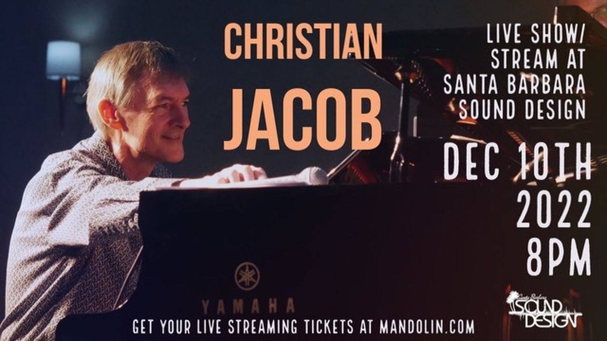 The New York Times has described Christian’s performances as: “phenomenal” and “masterful.” The multi-Grammy nominated pianist and arranger has had the pleasure of a diverse musical life. Beginning life as a classical music child prodigy and then branching out into the world of modern jazz, Broadway with Betty Buckley, Brazilian jazz with Flora Purim, and Big Band with Maynard Ferguson. Christian also scored two major motion pictures for director Clint Eastwood, “Sully” and “The 15:17 to Paris” and performed on over fifty recordings as either leader or sideman. Early honors include the Oscar Peterson Jazz Masters Award and winner of the Great American Jazz Piano Competition. This performance will be a dedication to solo piano. Keyboard Magazine: “Christian sounds like Bill Evans meets Keith Jarrett meets Maurice Ravel.” With this in mind, on December 10, 2022 Christian will perform and record live in studio at Santa Barbara Sound Design with engineer/producer Dom Camardella. Join Christian and Dom in the studio in downtown Santa Barbara for this unique performance/recording session.