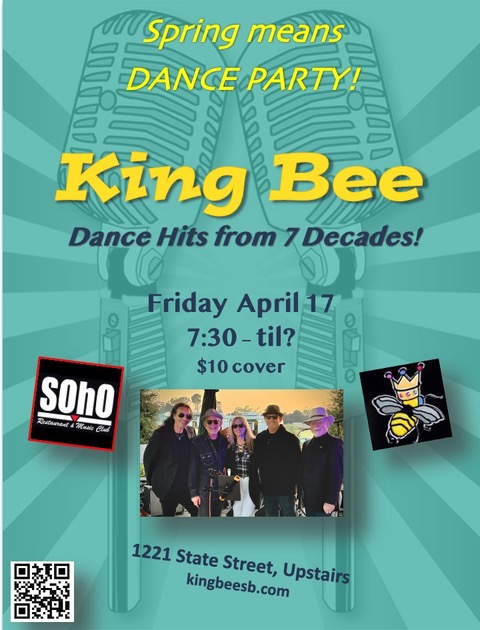 Find out what the Buzz is About… King Bee is beloved by their loyal fanbase for their high energy sets and eclectic mix of the best dance songs from over the years spanning classic rock n’ roll, pop, blues, and Motown/R&B. Santa Barbara area club-goers have been dancing to the contagious groove of King Bee’s rock n’ roll dance music for more than 20 years now! Their massive repertoire draws from 7 decades of top dance hits, adding their own secret sauce to the mix playing covers by a wide range of artists from The Beatles and The Rolling Stones to Michael Jackson, Prince, Miley Cyrus, Aretha Franklin, The Killers, and Pharrell.