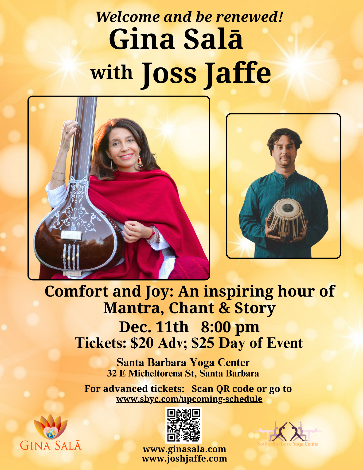 Comfort and Joy: An inspiring hour of Mantra, Chant and Story with Gina Salā (global vocals) with Joss Jaffe (tabla) with Gina Salā and Joss Jaffe