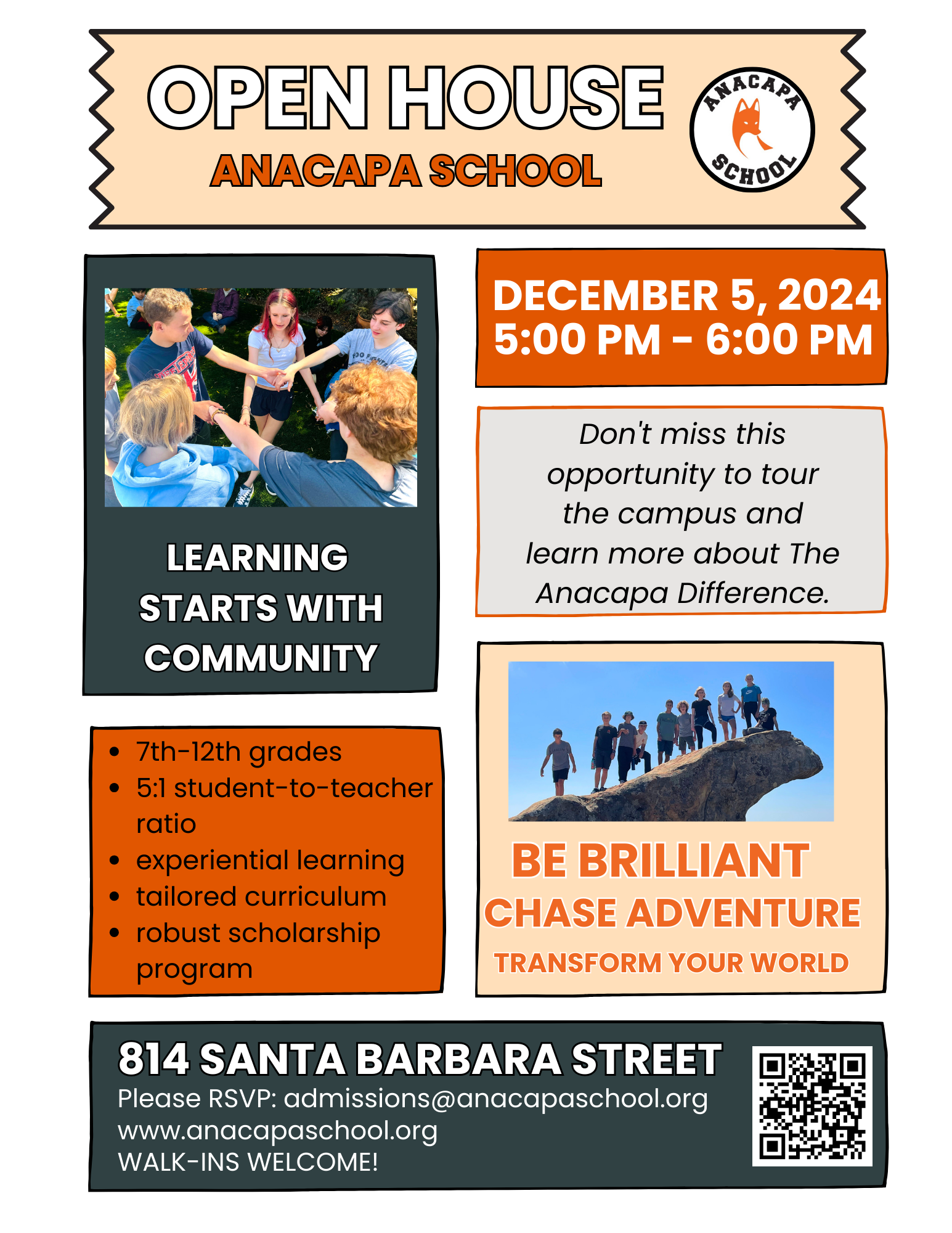 RSVP: 805-965-0228 or email admissions@anacapaschool.org