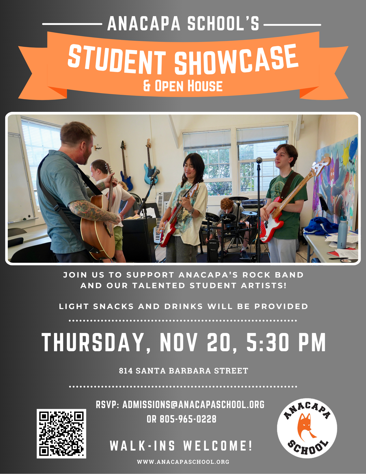 Kindly RSVP by emailing admissions@anacapaschool.org or calling 805-965-0228. Walk-ins are welcome, too!