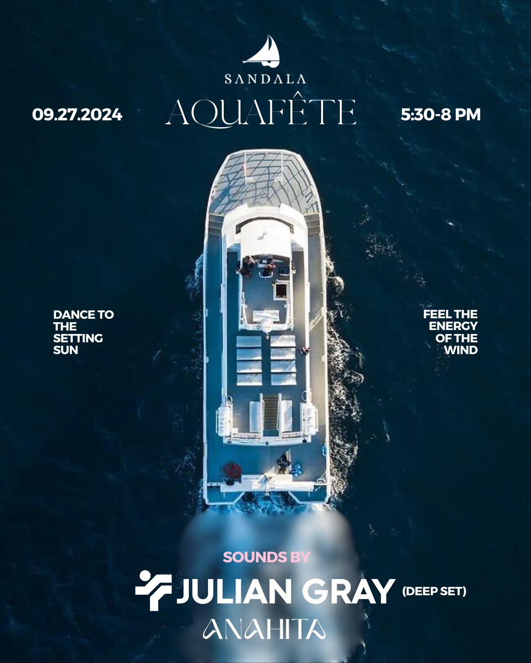 Join us for an ethereal celebration on the water with DJ Sets from Julian Gray & ANAHITA