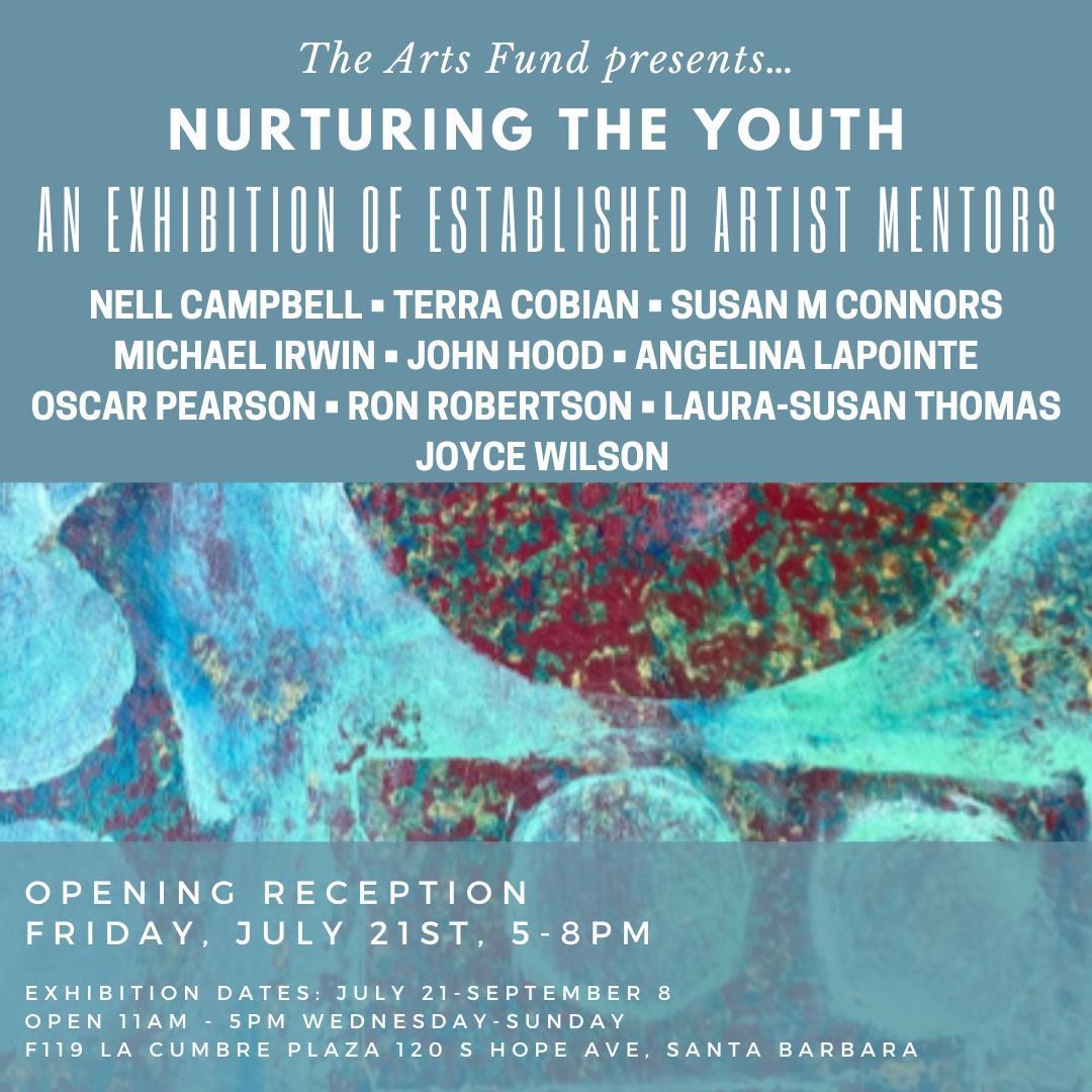 To celebrate 30 years of fostering the arts through mentorship to youth in Santa Barbara County, the Arts Fund welcomes 11 established art mentors of different backgrounds to showcase their work at our community gallery in La Cumbre Plaza. The opening reception coincides with our Arts Fund Art Walk, partnering 6 other art galleries for this free community event.