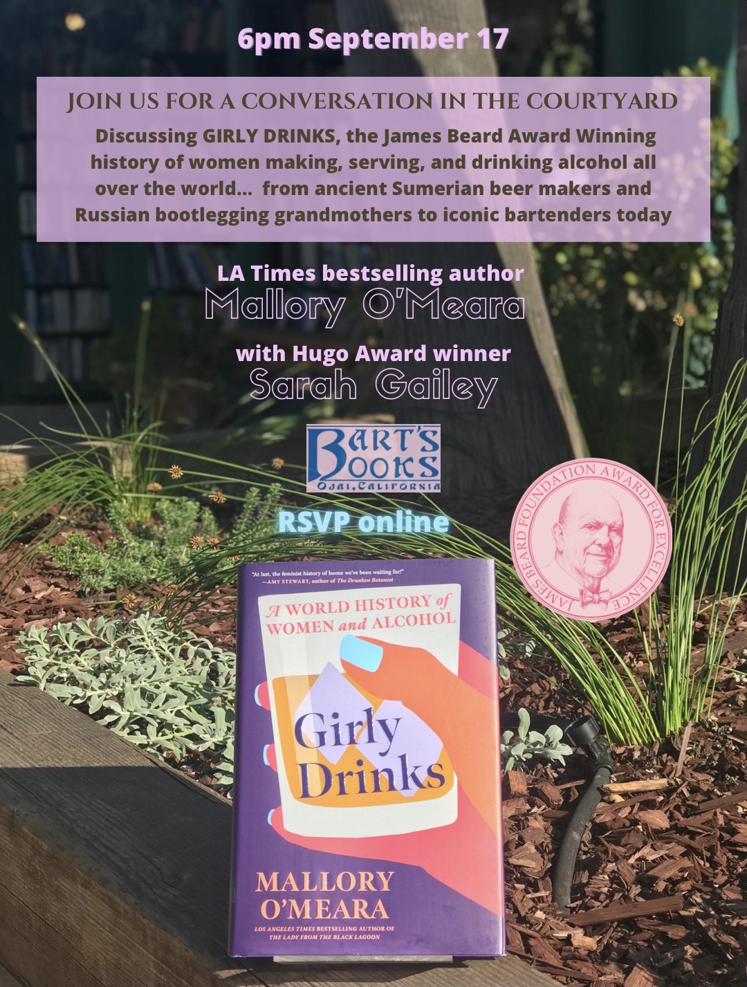 Join Bart’s Books on September 17, 2022 from 6-7pm, as we welcome the Los Angeles Times bestselling author Mallory O’Meara in conversation with Sarah Gailey discussing GIRLY DRINKS: A WORLD HISTORY OF WOMEN AND ALCOHOL, a James Beard Award winning history of women making, serving and drinking alcohol all over the world.