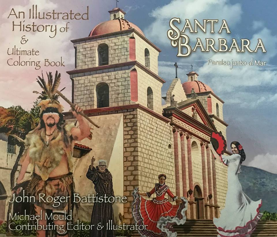 An entirely interactive history of Santa Barbara California, profusely illustrated with maps and historical figures and sites. Some pages can be colored by hand. John Roger Battistone and his family traveled throughout the world studying culture and architecture. As an avid collector of restored automobiles, old radios and coloring books, the dream began to one day develop a coloring book of Santa Barbara. Once Battistone met illustrator, artist and writer, Michael Mould and his wife, Vivian, the dream began to materialize. In Battistone’s words, “Come with us on this journey, as we delicately pull back obscured layers of tales and time, providing a portal to the noble heritage of Santa Barbara… We offer this tome as a heartfelt tribute to Santa Barbara in her celebrated history