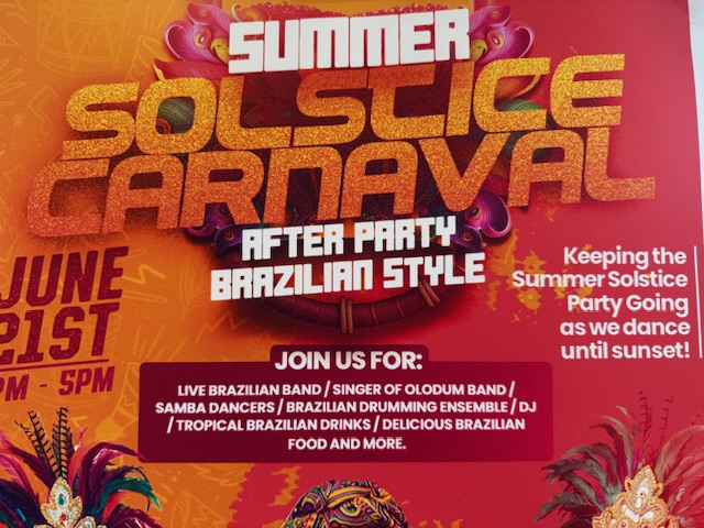 Those who register for the Solstice Carnaval with Mariano Silva will also have exclusive VIP access to the Solstice Carnaval After party where there will be live Brazilian music, Brazilian food and tropical drinks, and so much more! This will be held after the parade at the Alhecama Theater from 1-5pm. Space is limited, so get your tickets today!