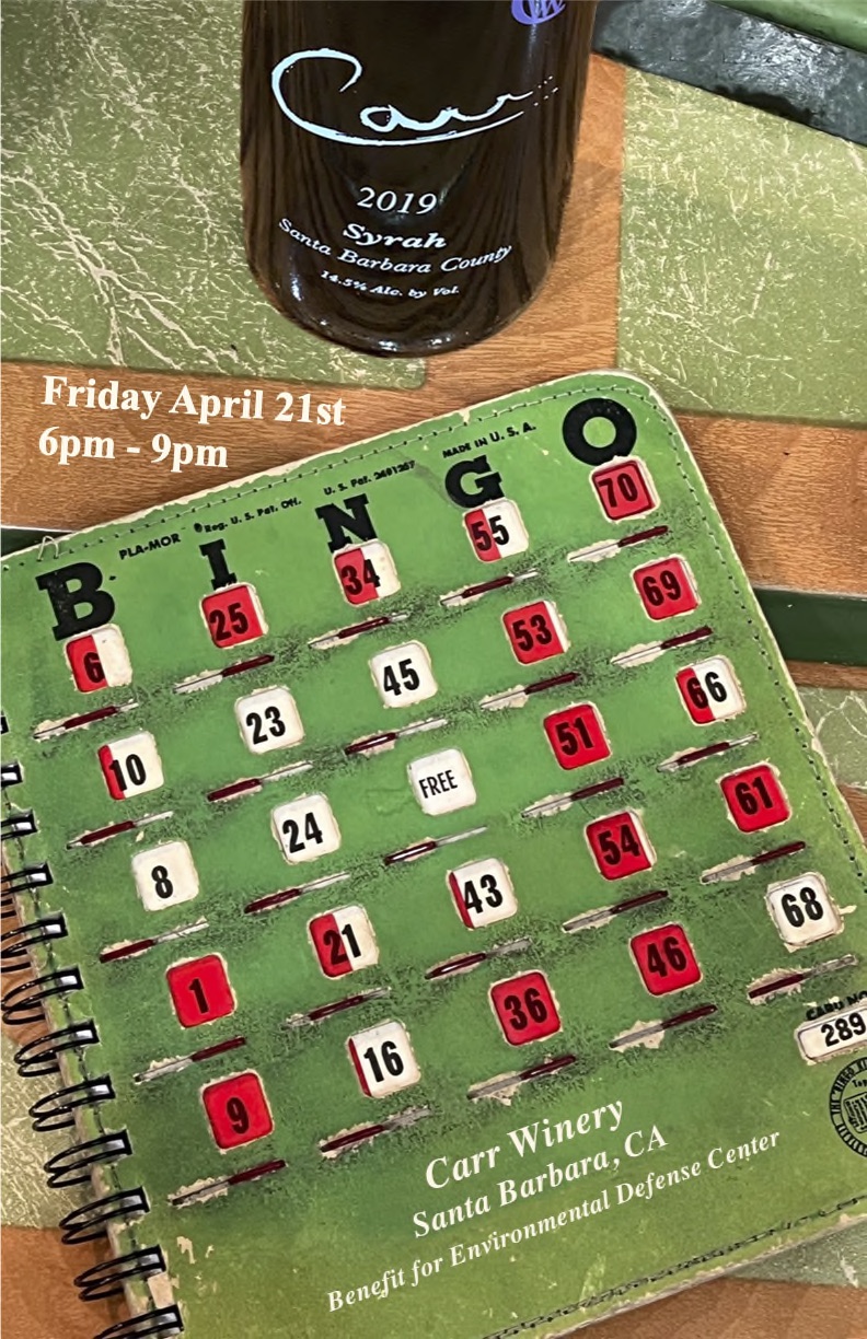 Buy a Bingo Card for a chance to win bottles of Carr Wine. 100% of proceeds from bingo card sales will go directly to Environmental Defense Center.