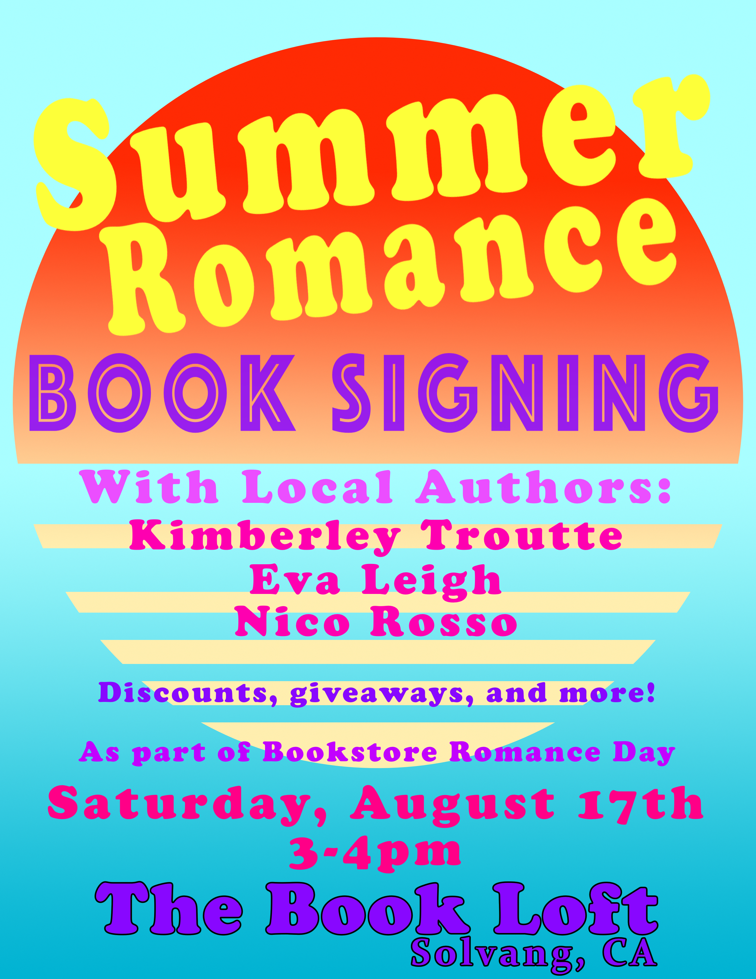 Our favorite romance authors Kimberley Troutte, Eva Leigh, and Nico Rosso will be here at 3:00 for a book signing. We’ll have goodies and giveaways while they are here! And 10% off all romance books all day! ❤️
