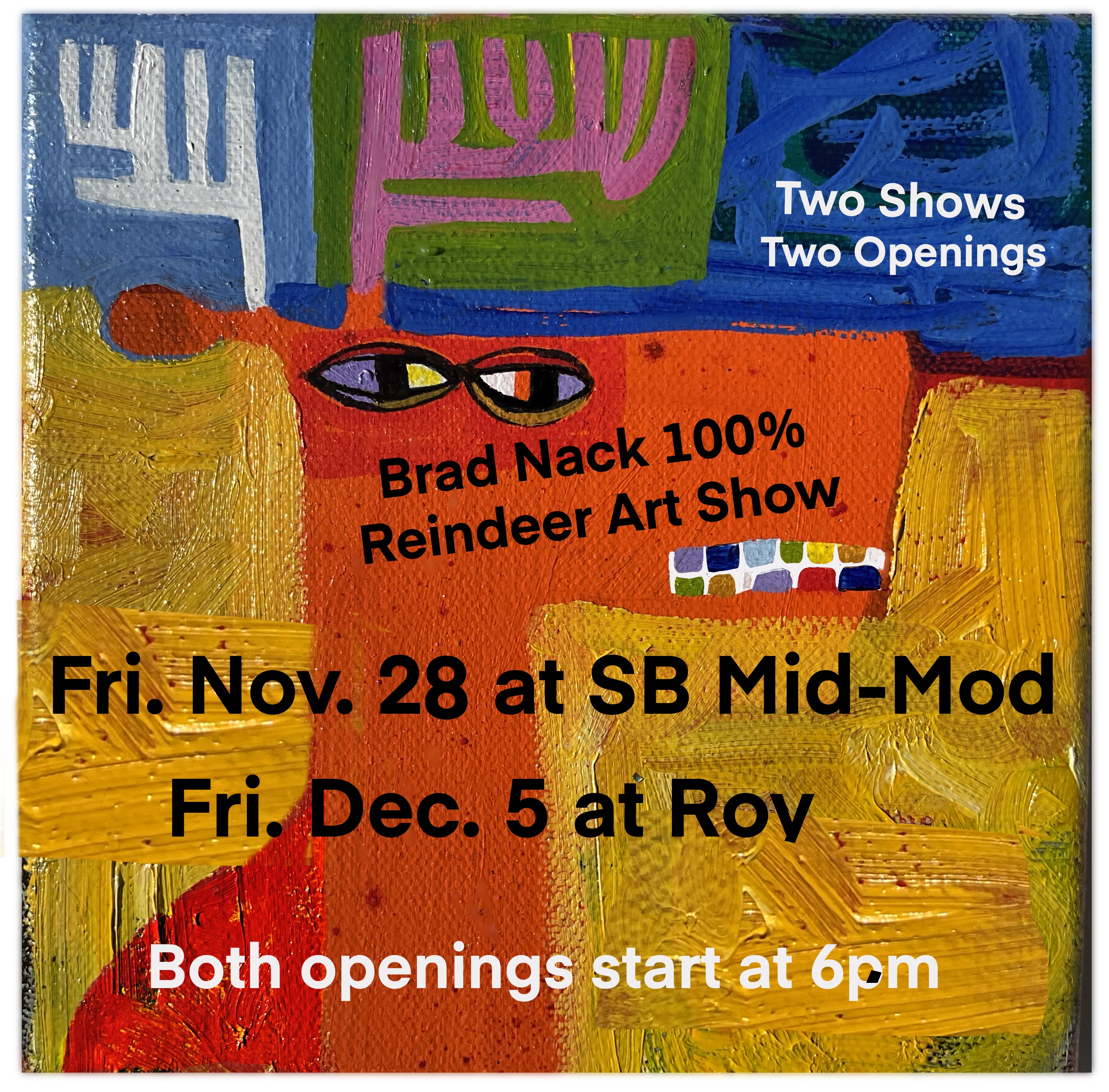 The show at SB Mid-Mod is going to be great and there will also be a follow-up one night only show with more reindeer paintings at Roy on Dec. 5th.