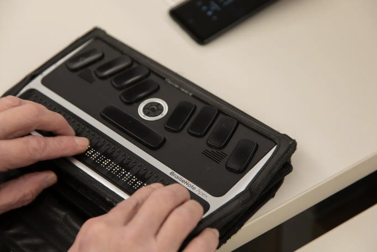 Braille continues to be a good way to read the screen on your computer and even your phone. There are also dedicated braille note taking products, much like tablets, which now offer easy Internet access. Learn more about various electronic braille options presented by our access technology instructor, Skylar Covich, who is a totally blind life-long braille user.